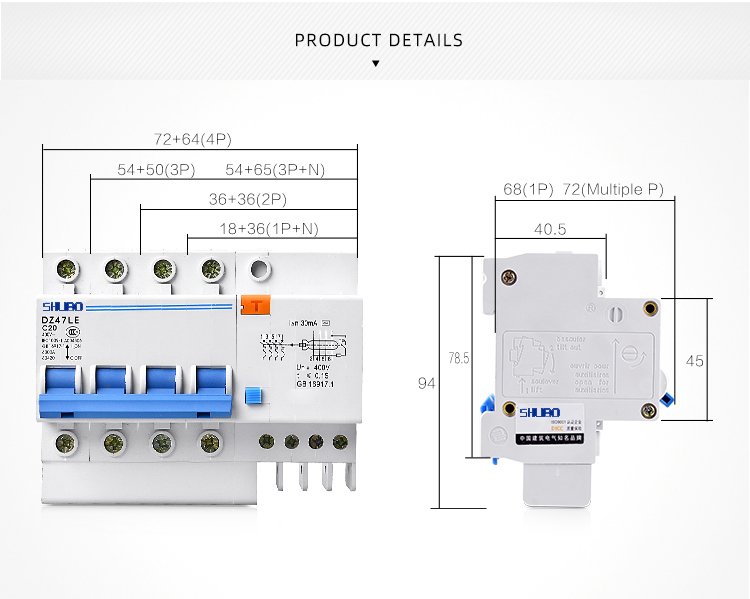 DZ47LE-63 residual current circuit breaker is composed of DZ47-63high breaking mini circuit breaker and current leakage release. The ELCB is current electronic current leakage circuit breaker, the main parts include zero sequence current transformer, electronic panel, current leakage release and the circuit breaker with protection functions of over load, short circuit.