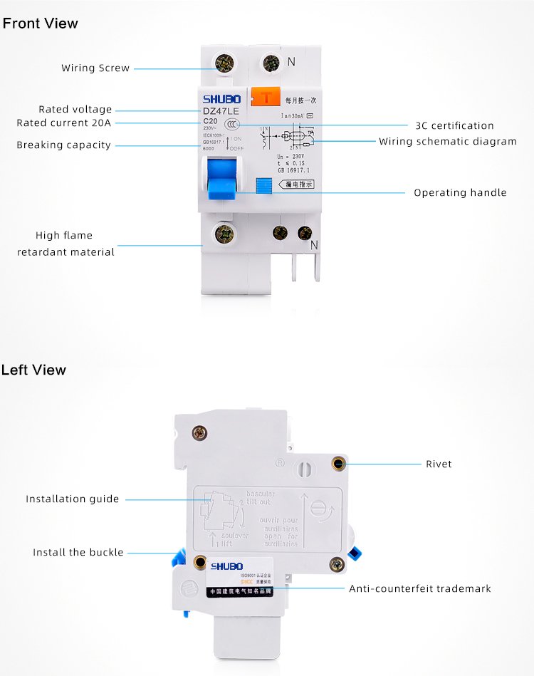 The ELCB also can protect the circuit against overload and short circuit or can be used for the unfrequent switch of the circuit under normal condition. And extra protection functions like over voltage, under voltage can be added according to customers’ request.